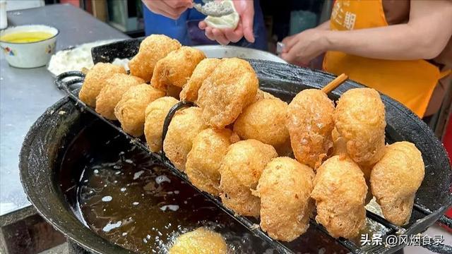 下油锅一炸,热胀冷缩,面皮饱读起佛手状,出锅后光泽红金,咬一口酥脆掉渣,内部却是软糯空腹。