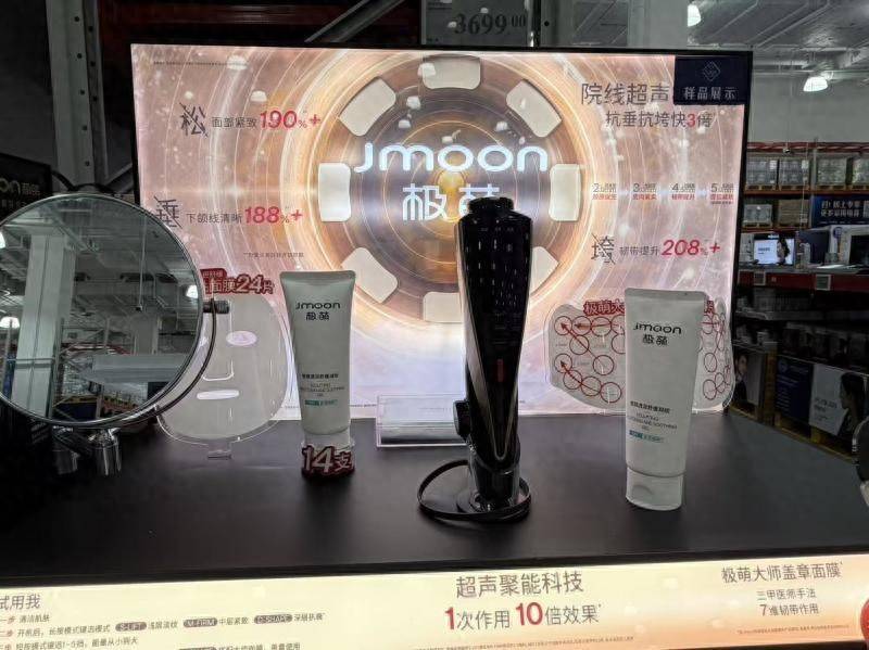 315前夜,在某山姆会员商店里,打着“院线超声在家作念”旗子的极萌超声炮好意思容仪被摆放在货架显眼位置,货架上方的电子宣传屏自满着“面部紧致190%+”“下颌线了了188%+”“韧带普及208%+”的醒野心语,眩惑了不少会员容身。