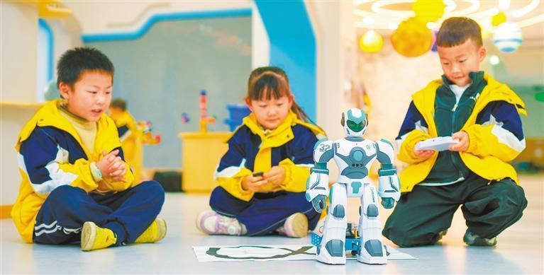 3月20日开云体育(中国)官方网站,四川省射洪市一幼儿园里,孩子们在课堂上学习操控机器东说念主。刘昌松摄(中经视觉)